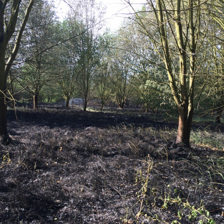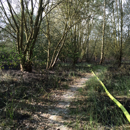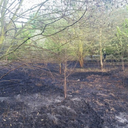 Bereits auf der Anfahrt war für das LF-UB1 eine Rauchentwicklung sichtbar, allerdings kam diese offensichtlich nicht direkt aus der Kleingartenanlage. Im Rahmen der Erkundung und aufgrund von weiteren Hinweisen aus der Bevölkerung konnte schließlich ein ca. 60 m² Bodenfeuer an einem Weg in einem kleinen Mischwaldbestand gefunden werden. Noch während an dieser Stelle die Brandbekämpfung von den Urbacher Kräften vorbereitet wurde, kam eine weitere Bürgerin auf die Einsatzkräfte zu und führte diese zur anderen Seite des Baumbestandes. Hier brannte es ebenfalls an diversen Stellen im Bodenbereich (Gras, Pollenablagerungen etc.). Im Rahmen der erweiterten Lagefeststellung stellte sich dann heraus, dass es sich in diesem Bereich um eine Brandfläche von ca. 10.000m² handelte. Teilweise war die Fläche bereits verbrannt, teilweise glimmten noch Glutreste und teilweise schlugen noch offene Flammen den Einsatzkräften entgegen.