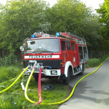 Am gestrigen Nachmittag meldeten Bürger der Leitstelle der Feuerwehr Köln eine relativ große Rauchentwicklung im Bereich der Kleingartenanlage „Hasenkaul“ in den Elsdorfer Feldflächen. Aufgrund dieses Meldebildes entsendete der Disponent Kräfte nach dem Einsatzstichwort „LAUBE“ – brennt Gartenlaube. Da die Einsatzmittel der, neben der Löschgruppe Urbach, für diesen Bereich zuständigen Feuer- und Rettungswache 7 bei Paralleleinsätzen auf der Autobahn und im Rettungsdienst gebunden waren, erfolgte die Disposition weiterer Kräfte der Feuerwachen 8 (Ostheim) und 10 (Deutz).