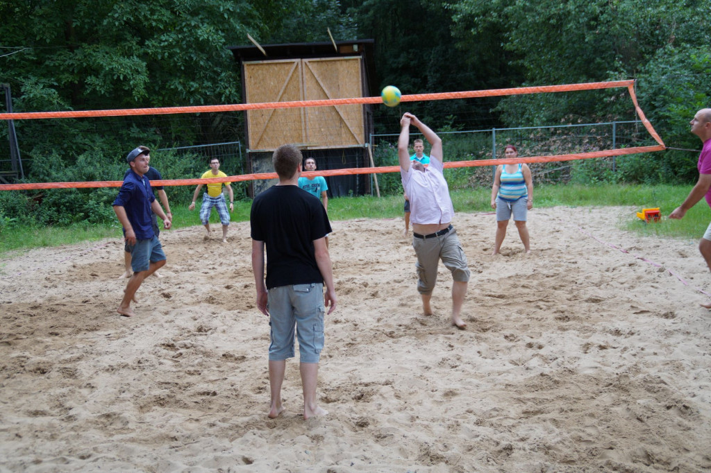 Später entdeckten Volleyballer und die, die bis dato noch nicht wussten, welches Talent bei ihnen eigentlich für diesen Sport angelegt ist, den Beachvolleyballplatz und spielten bis zum Sonnenuntergang, nur unterbrochen durch den Getränke-Bring-Service, voller Begeisterung. Als Nachwirkung dieses Tages bildete sich inzwischen eine Gruppe von Volleyballspielern, die sich regelmäßig abends zum Spielen treffen. Mit Entschwinden der Sonne, löste sich der Jahresausflug nach und nach auf und der Heimweg begann in kleinen Gruppen.